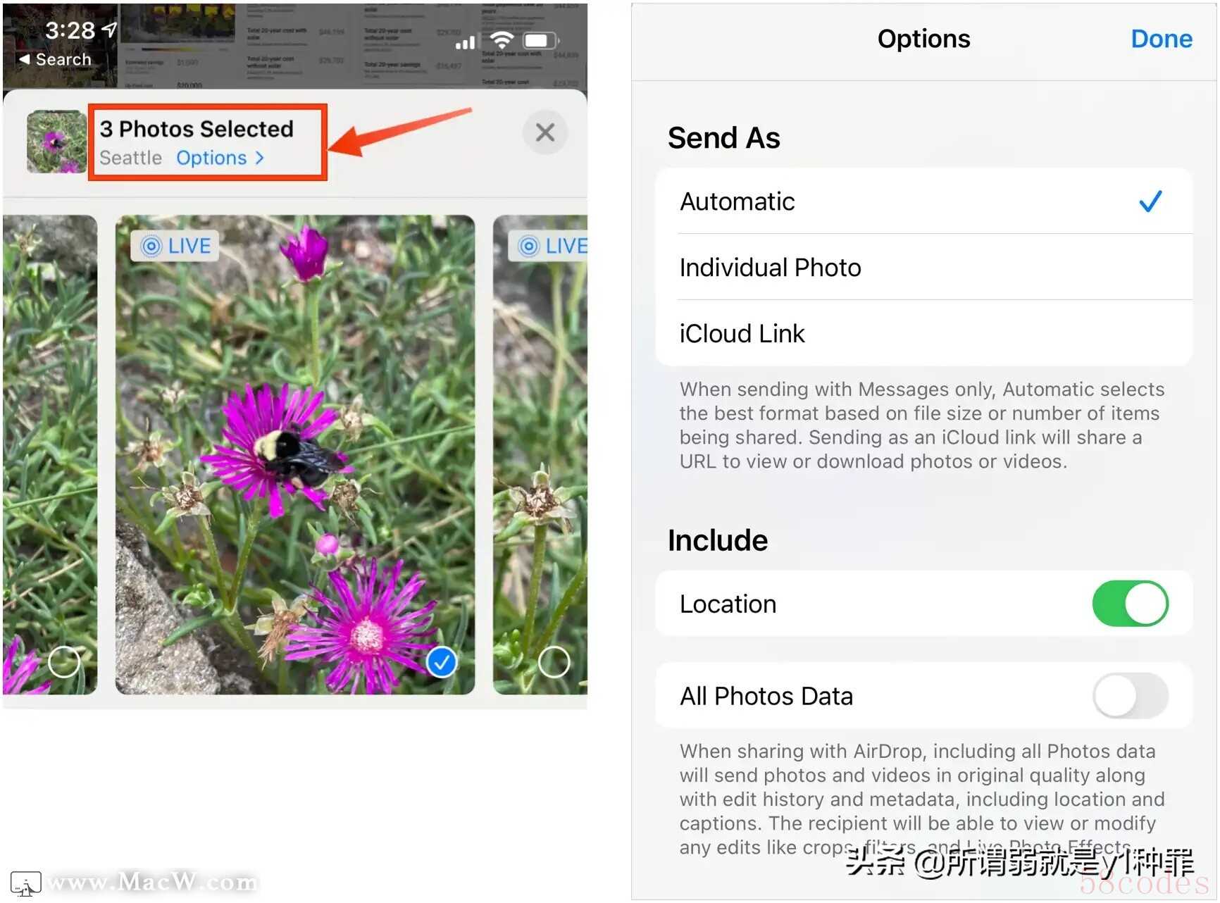 两年前,Apple 添加了一种在共享图像和视频时删除位置的方法,尽管它有点难以发现: