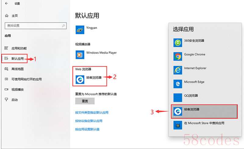2、哈客安全浏览器设置默认浏览器的方法