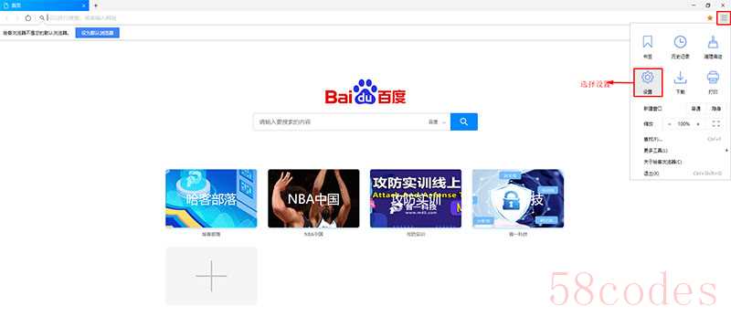 (1)打开哈客安全浏览器,点击右上角菜单,选择-设置;