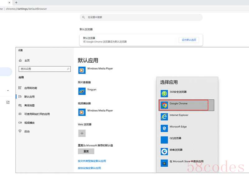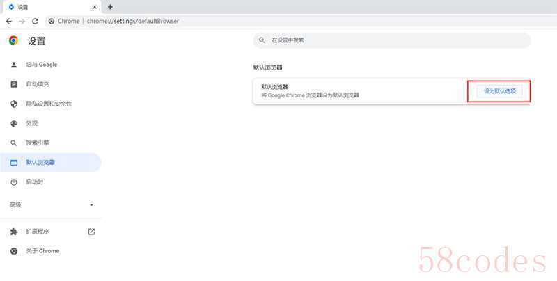 (2)点击“默认浏览器”-“设为默认选项”,选择谷歌浏览器作为默认浏览器就可以了。