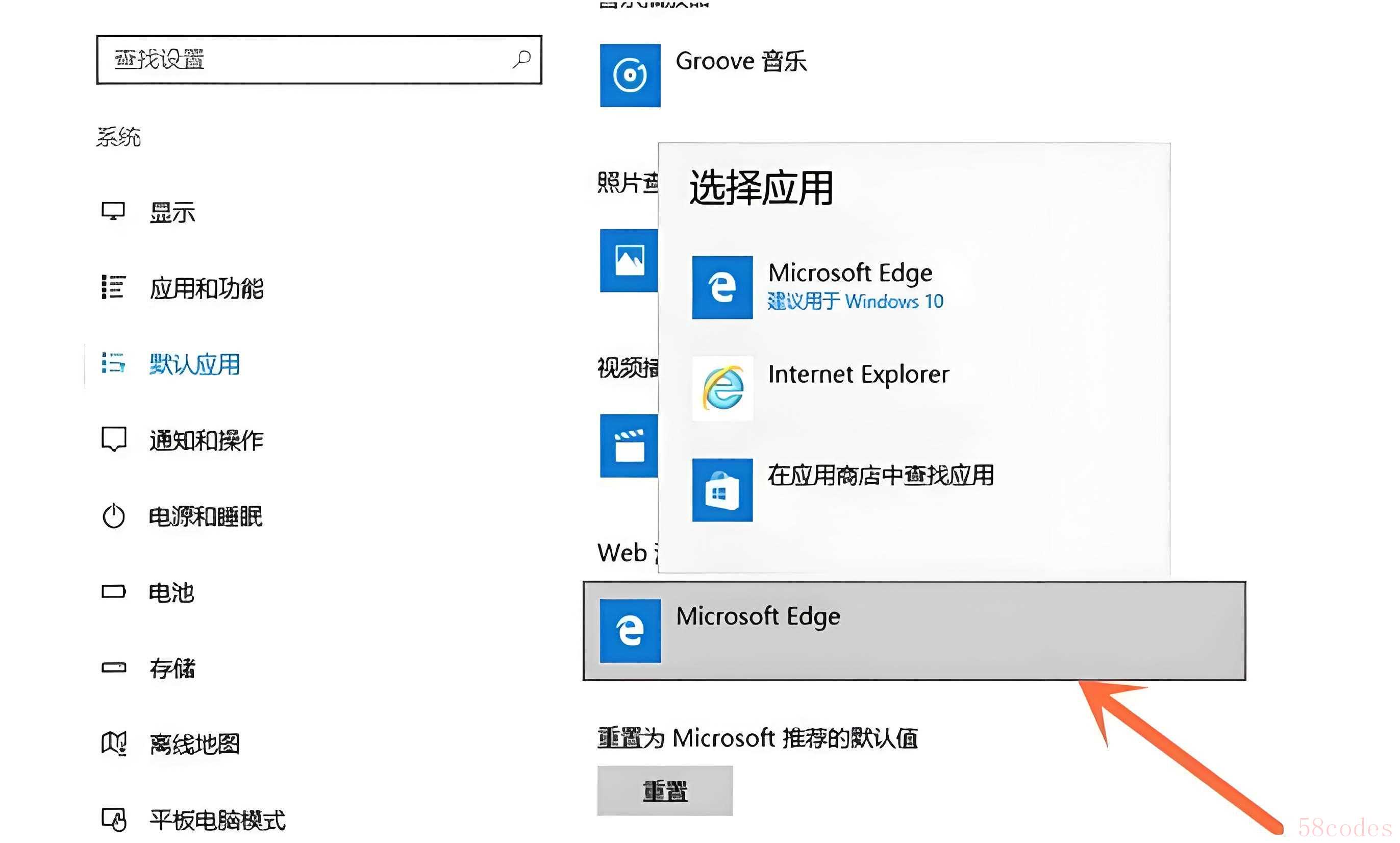 如果是Win10的系统,我们会在这里边看到各种类型软件的默认应用,向下滚动找到“Web浏览器”,点击它,在这里,你会看到你电脑上安装的所有浏览器。选择你想要设置为默认的浏览器。选择完毕后,你的设置就会自动保存,以后点击链接就会自动用你选择的浏览器打开了。