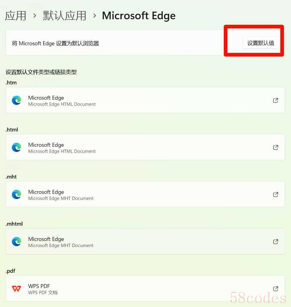 在这里可以看到有个设置默认值,点击设置,保存后默认的软件就是我们选择的浏览器了。