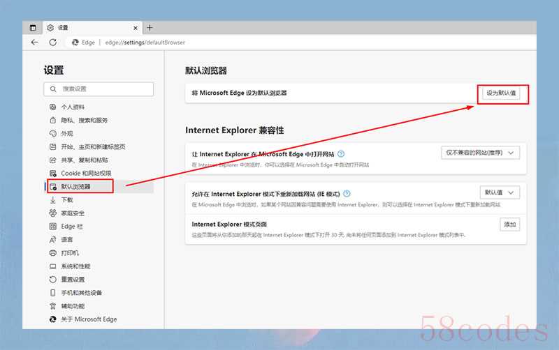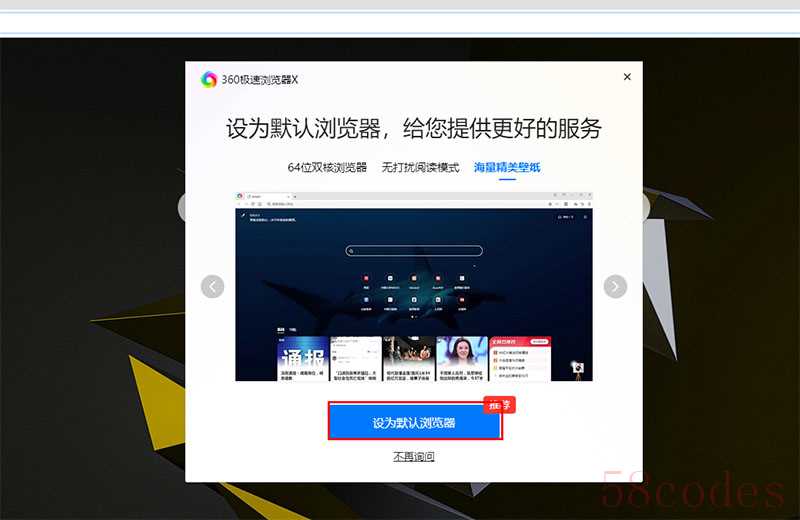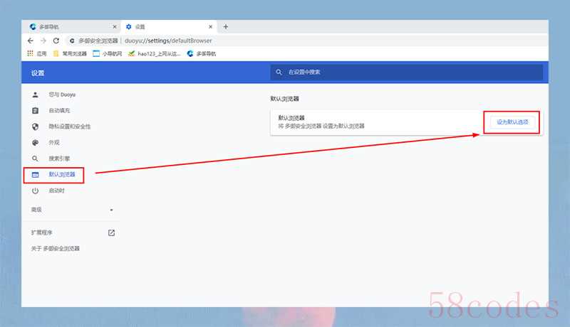 - 查找“设为默认浏览器”或类似的选项,并启用它。