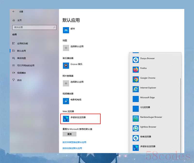 - 点击当前默认的浏览器,然后从列表中选择您想要设置为默认的浏览器。