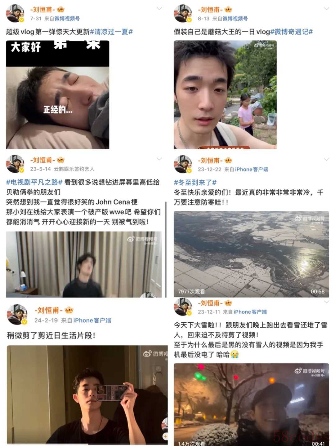 演戏之外,刘恒甫会在微博上分享自己的vlog