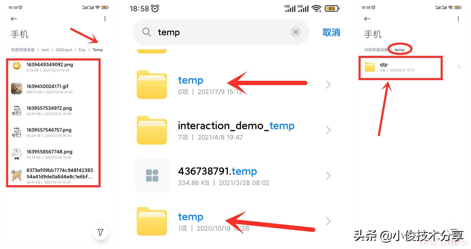 打开文件夹,直接搜索【temp】文件夹