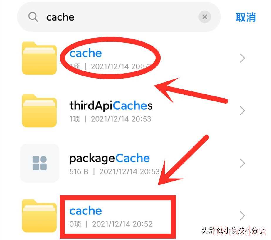 众所周知这个文件夹就是手机缓存文件夹了,打开文件管理,输入【cache】