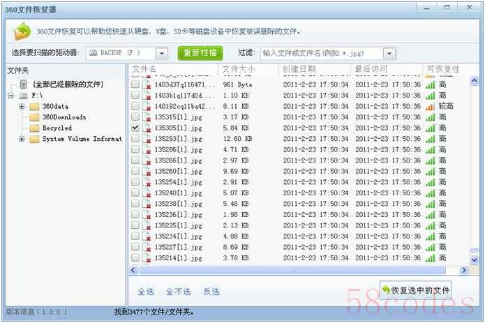 2. 360文件恢复:免费应急首选,适合简单电脑文件恢复