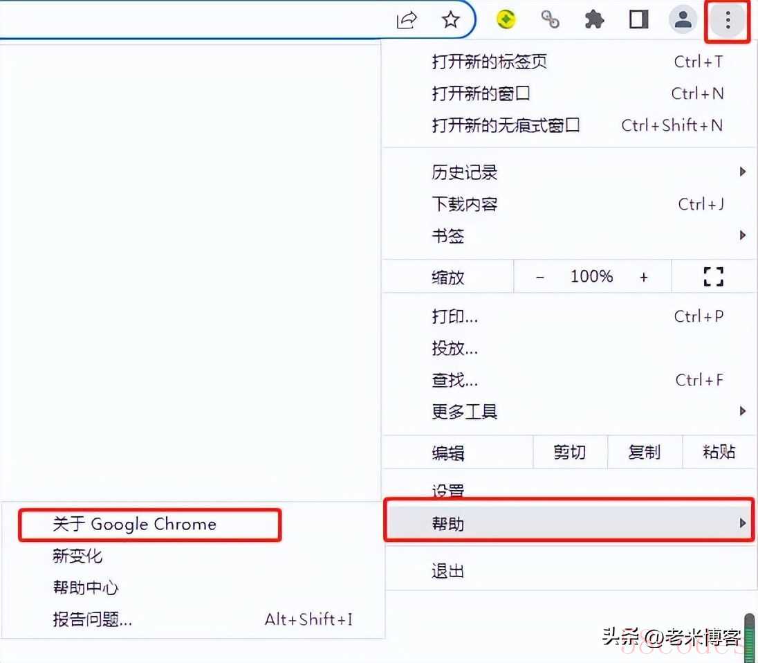"方法一:通过Chrome菜单查看版本号"