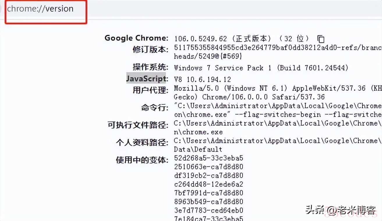 使用此命令查看chrome版本号可以获得更详细的信息,譬如:JavaScript版本号、个人资料路径及其他需要详细的设备调试信息等内容。