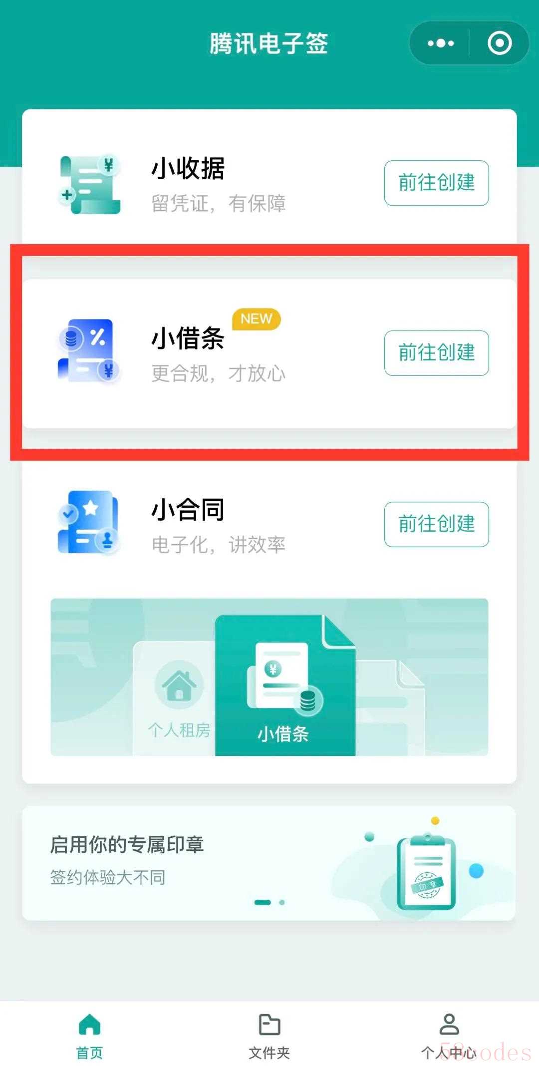 打开小程序搜索:腾讯电子签,看到这个页面了吗?以后碰到想要借钱的朋友,直接在这里创建一个小借条,然后转发给他(嘿嘿嘿)~