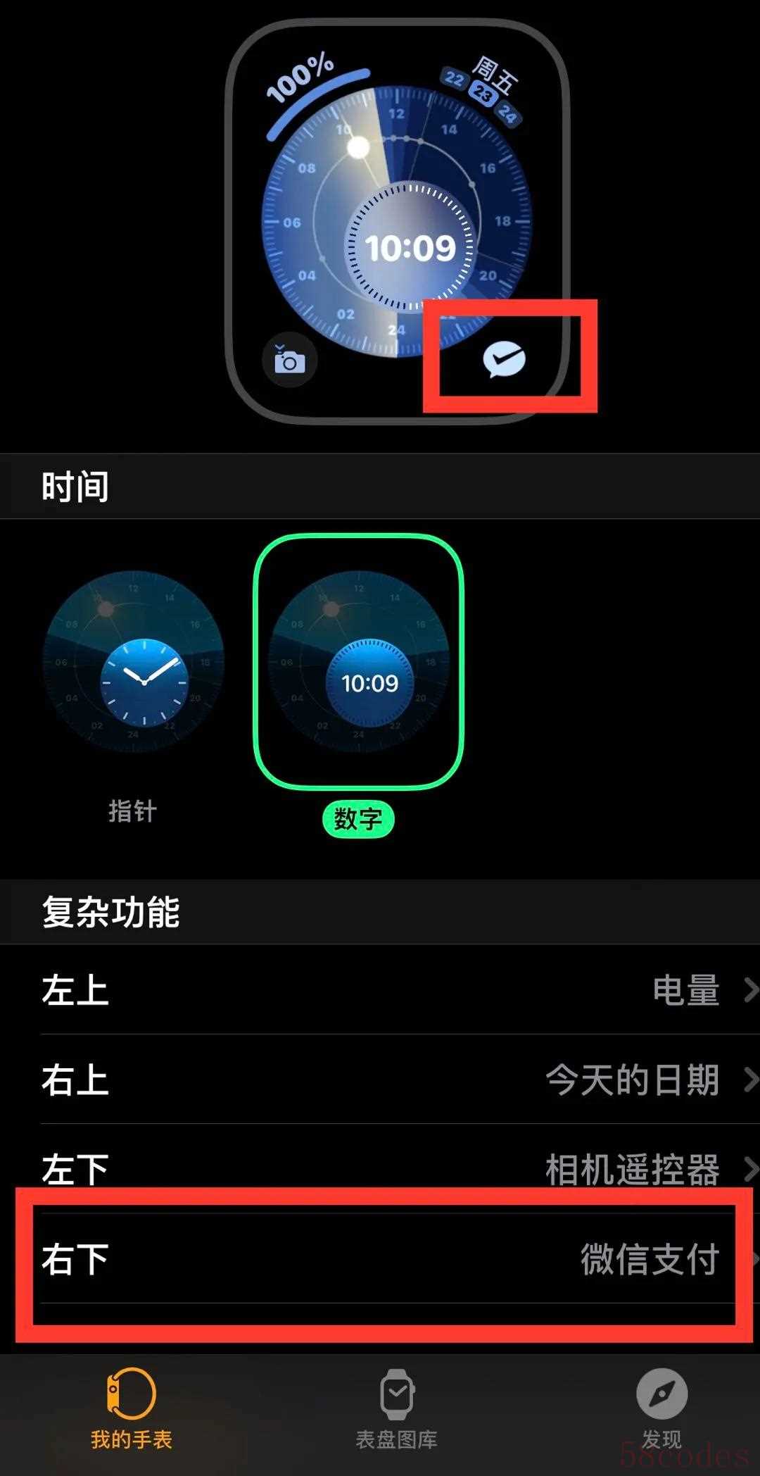 这时候如果你用的复杂功能表盘,例如果子这款 “太阳刻度盘”,你甚至还可以将微信支付直接添加到表盘上: