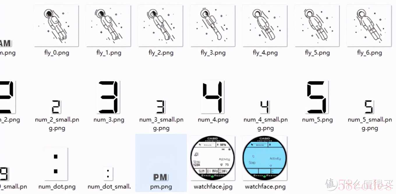 太空人表盘,对比于指针式表盘也是更加的简单,只需要准备数字的图片,还有宇航员的动画序列图片就可以了。