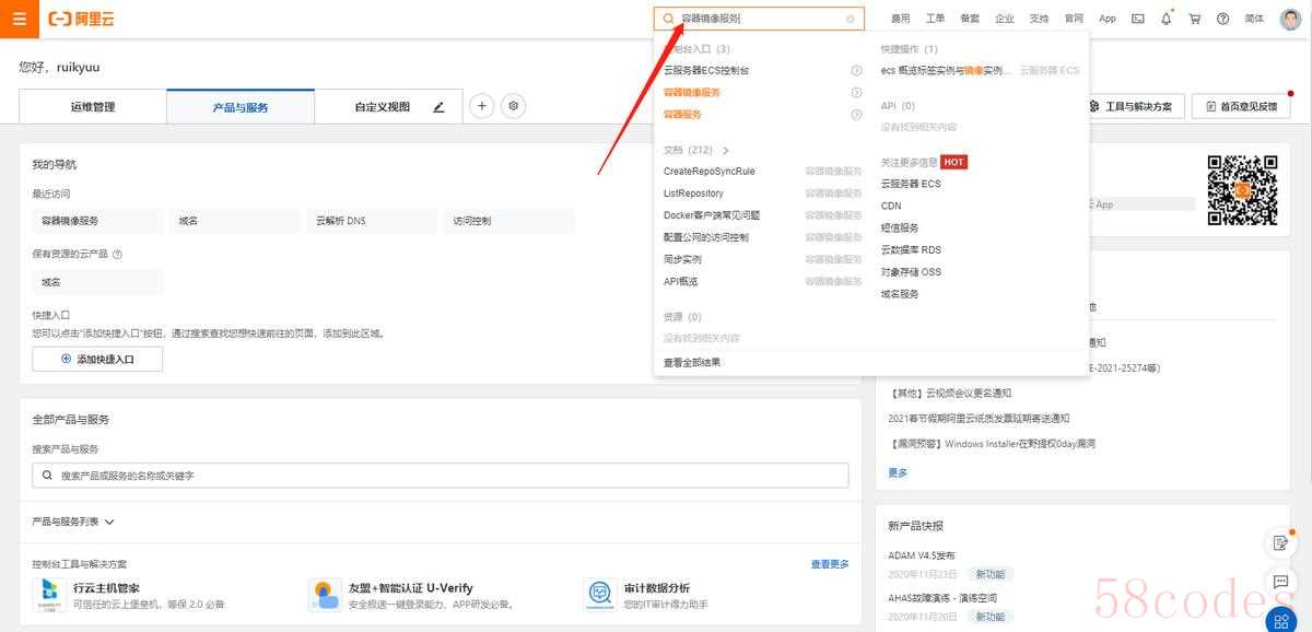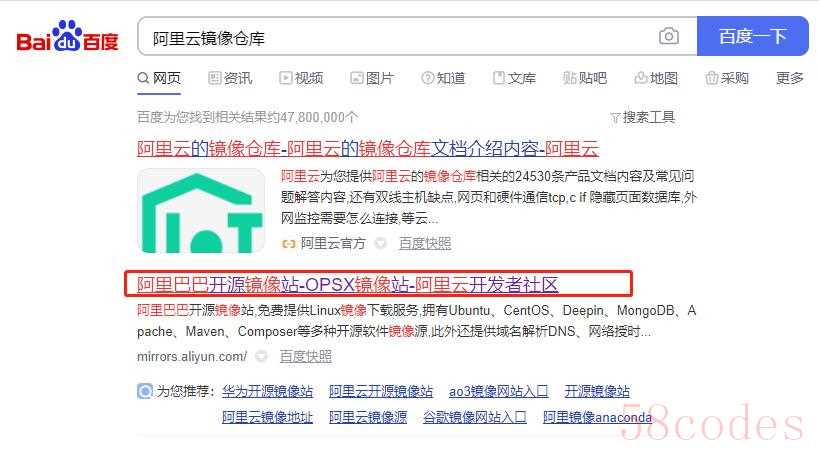百度搜索阿里云镜像仓库。进入阿里官网。