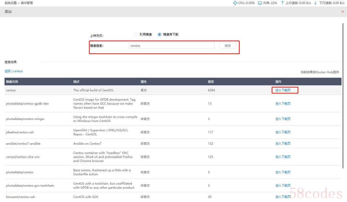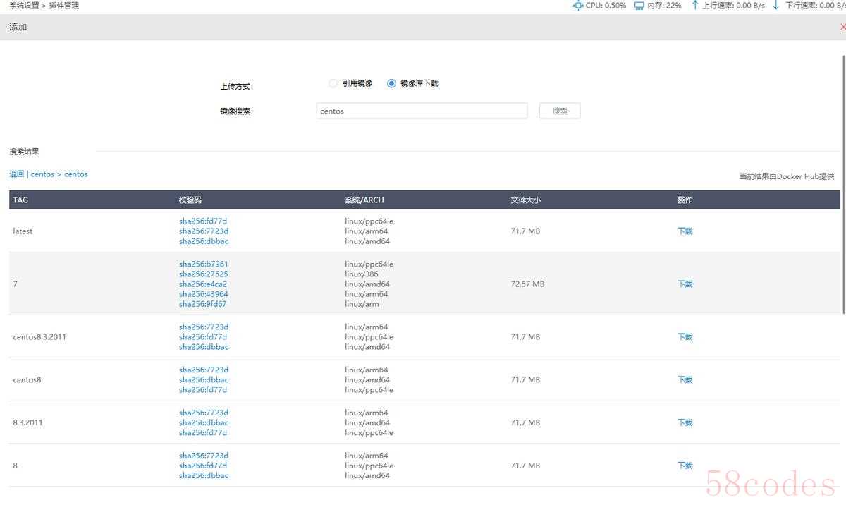 上传方式选择镜像库下载,搜索需要下载的镜像文件--进入下载页--点击下载,下载成功后点击确定即可在镜像列表中显示。