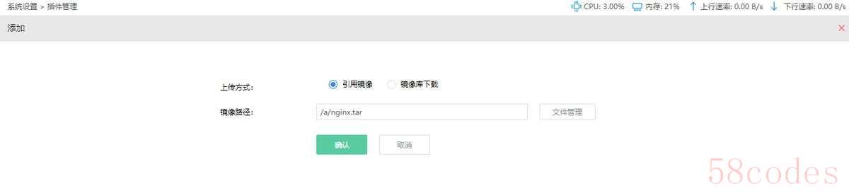 点击添加可选择上传方式为引用镜像或镜像库下载。