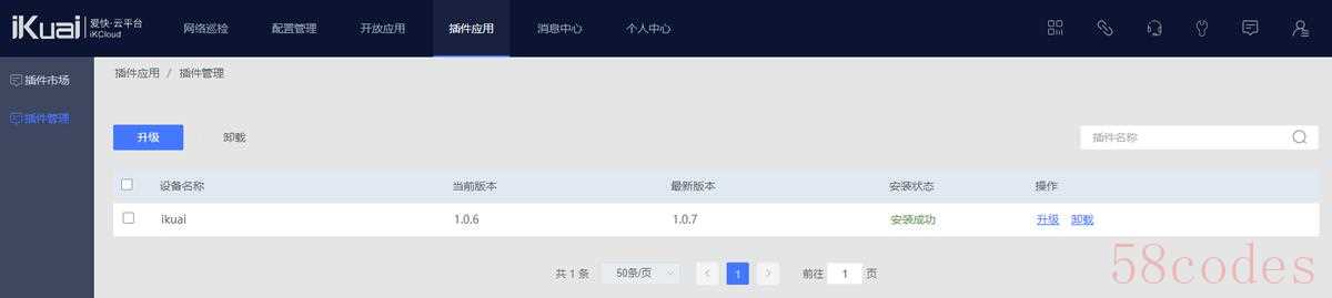 安装成功后可在插件应用--插件管理中进行查看。此页面显示插件名称以及安装量。