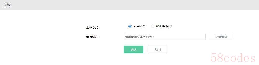 上传方式选择为引用镜像,需要先在磁盘管理--文件管理中上传镜像文件,然后将镜像文件路径复制粘贴到此处点击确认后,等待文件加载成功即可。
