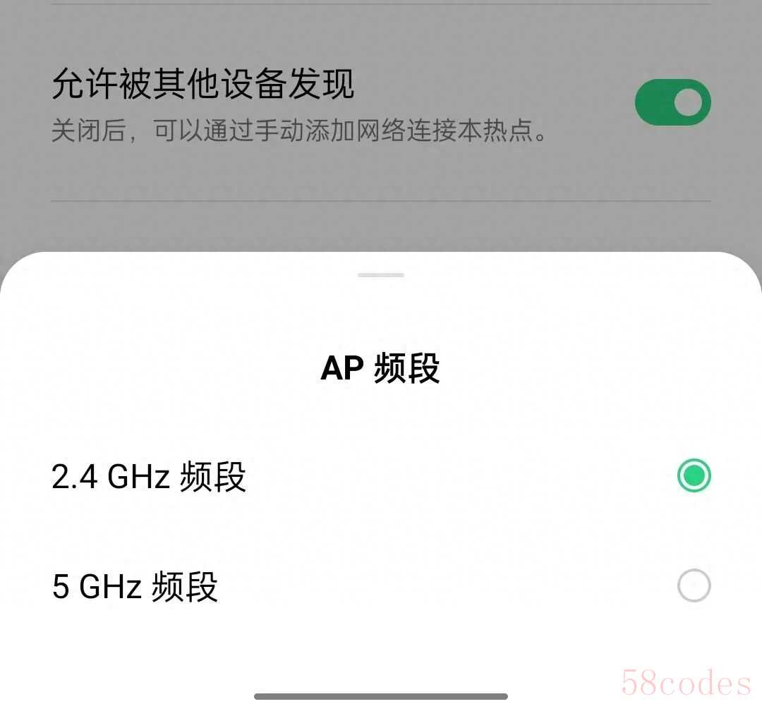 安卓机:进入“个人热点”设置界面,把AP频段改为“2.4GHz频段”。