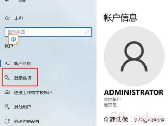 步骤三、设置密码1、打开【账户】后,在弹出的窗口左侧找到并点击【登录选项】。如下图: