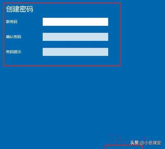 4、单击【添加】,会弹出一个设置密码的界面,需要输入两遍同样的密码,务必牢记该密码,以免后面想不起来,给自己带来不必要的麻烦。随后会有一个设置密码提示的步骤,就是为了以防万一,当你记不起来密码,可以通过提示来想起开机密码,比如你的密码是自己的生日日期,你可以在这里输入【生日】二字,又或者其他能提醒自己的提示。等密码和密码提示都输入好后,单击【下一步】。如下图: