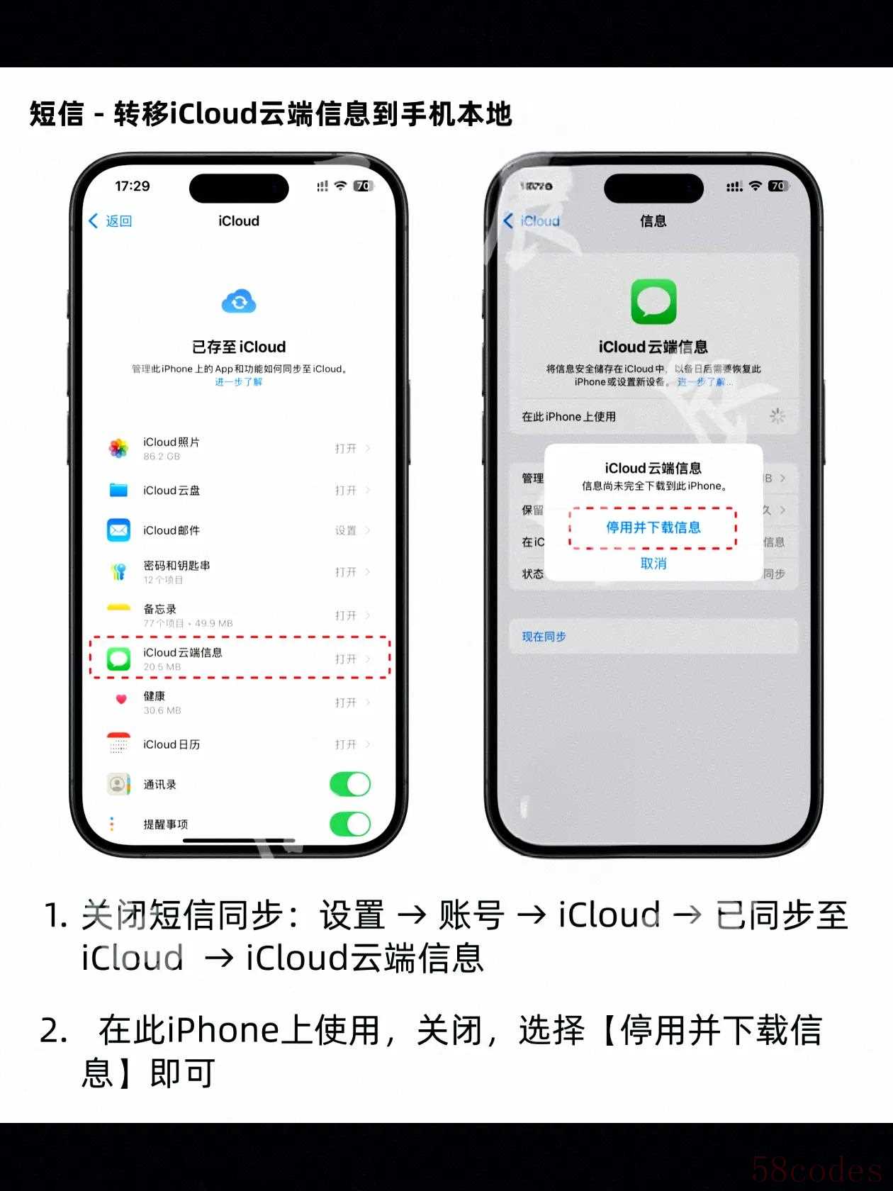 3. 短信:停用并下载信息,让短信留在本地。