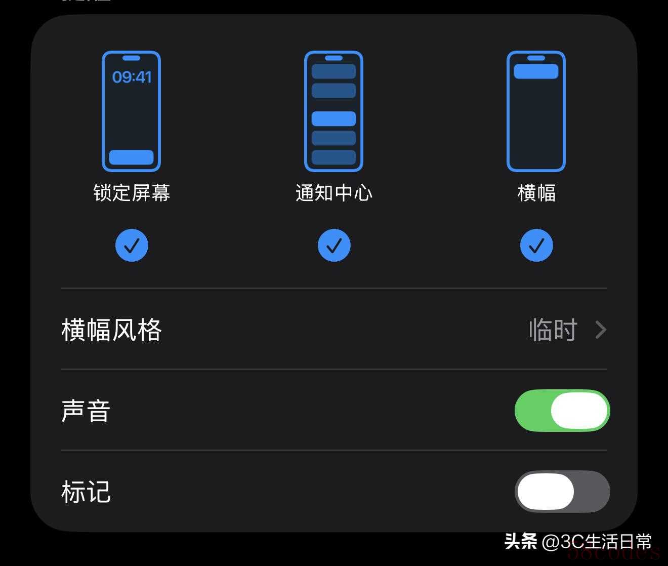 - 方法一:进入【设置 → 通知】,找到对应 APP,关闭【标记】即可。