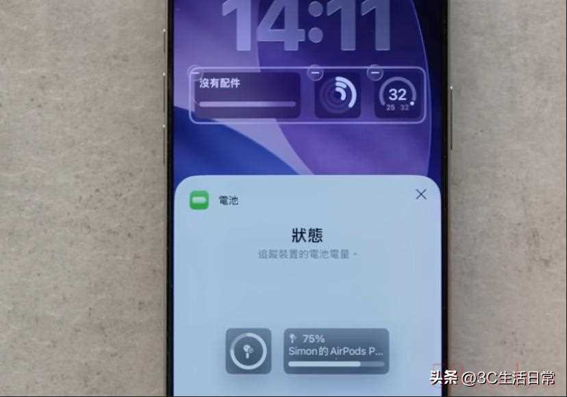 这样即使不解锁手机,也能随时看到电量情况。