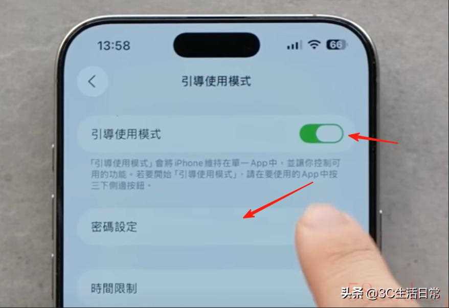 - 打开【设置 → 辅助功能 → 引导式访问】,设定密码。