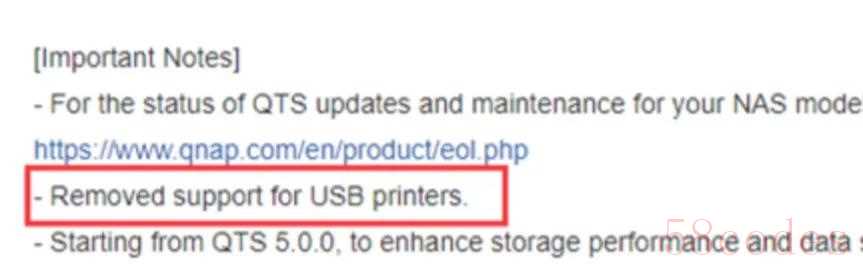 但在系统设置中愣是没找到,我明明记得有大佬分享过威联通共享打印机的教程,后来一查,原来是QTS 5.0移除了对USB打印机共享的支持,话说这个功能我觉得很好用,没看懂为什么要移除。