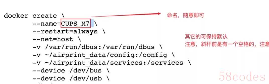 好的,安装命令如下,大妈把后面的斜杆给吞了,所以下面附命令的截图,大家安装时记得把斜杆给加上去。命令截图如下,如果你想指定路径,例如在Container文件夹中进行映射,可以将~/airprint_data/services和~/airprint_data/config替换成你实际路径。docker create