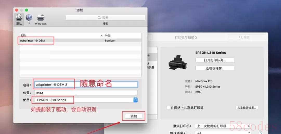 当然,电脑和群晖此时处于同局域网中,然后会自动扫描,选中USBPri开关的即是共享的打印机,按下图设置,点击添加。
