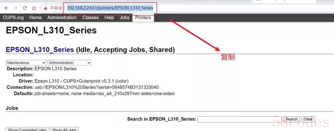 进入CUPS后台,找到打印机,点它名字进去,复制以下地址。