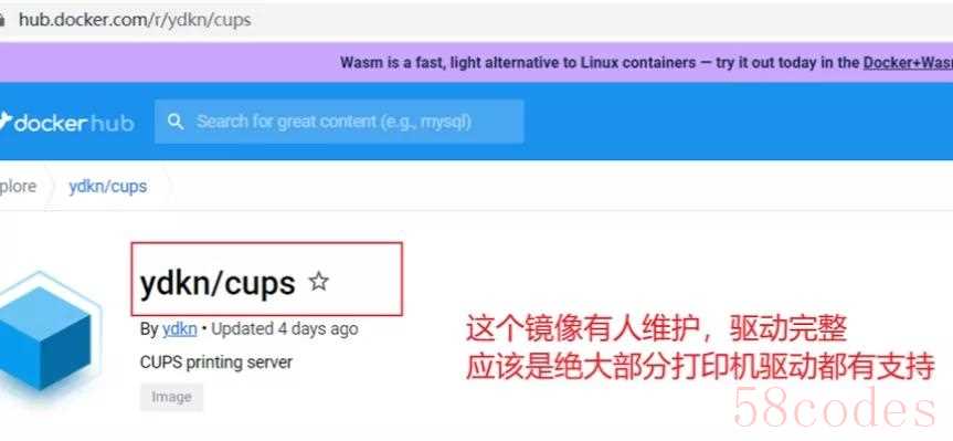 在Docker HUB中搜索CUPS,可以发现有许多镜像,但大部分镜像是没维护了,所以一些新打印机的驱动就没有在里面,就算安装上这些旧镜像,也不可用,除非你要解决驱动问题。所以我找了这个热门镜像,并且目前是有人维护的,也支持我的L310,在一些旧镜像上就不支持我的打印机,要手动安装,非常麻烦。所以推荐大家使用下图中的这个CUPS镜像,驱动完善,热门,有人维护。