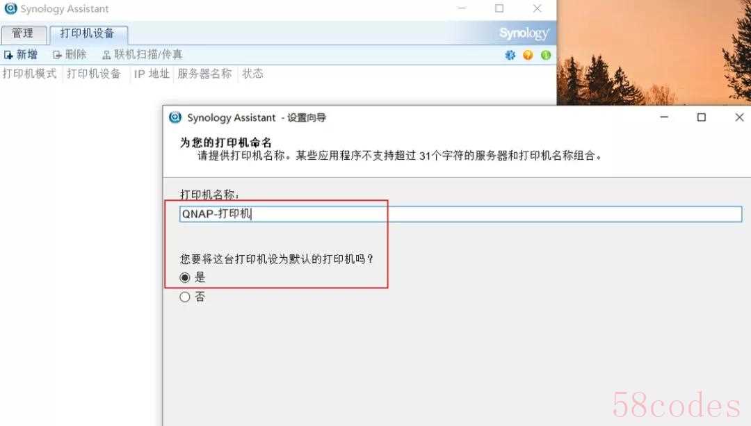 4. "在NAS上共享打印机:" 启用共享功能,并设置访问权限。