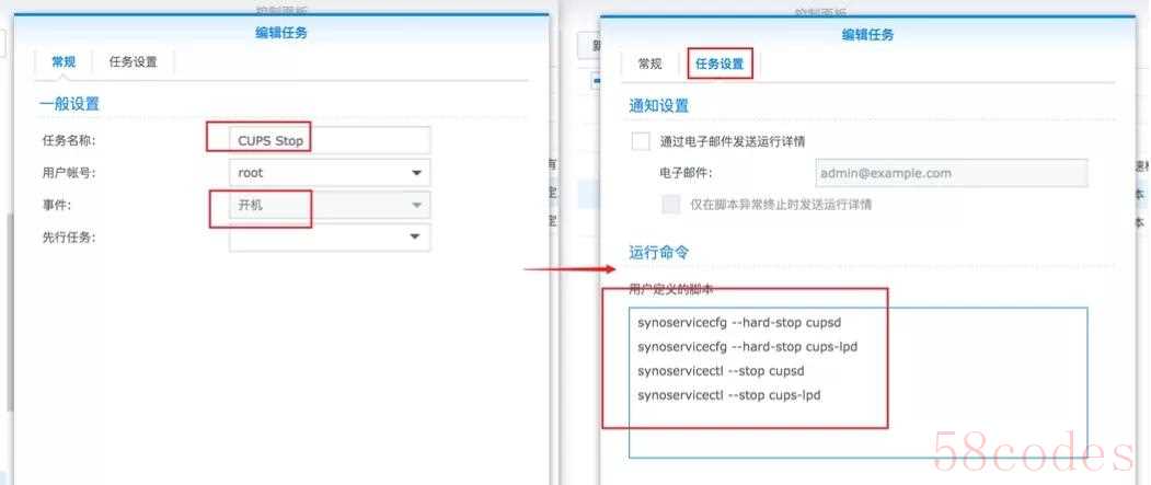 当然,群晖也可以这样安装的,但是因为群晖有内置CUPS服务,如果Docker中也安装CUPS,就会有冲突,可以在控制面板-任务计划-新增-触发的任务-用户定义的脚本,添加以下脚本,触发形式为开机,保存后开启即可,这样,就会禁用群晖自带的CUPS服务,方便Docker版的CUPS正常运行,不会有冲突,如果想用回自带的CUPS,删除这个脚本即可。因为群晖自带的打印机共享服务有时不能开启苹果无线打印,因为驱动不完善,而你在Docker安装就可以有驱动实现无线打印,像我这台爱普生L313(L310系列)在自带的共享打印机中就不能开启无线打印,但实测通过Docker安装可以开启的。synoservicecfg --hard-stop cupsd