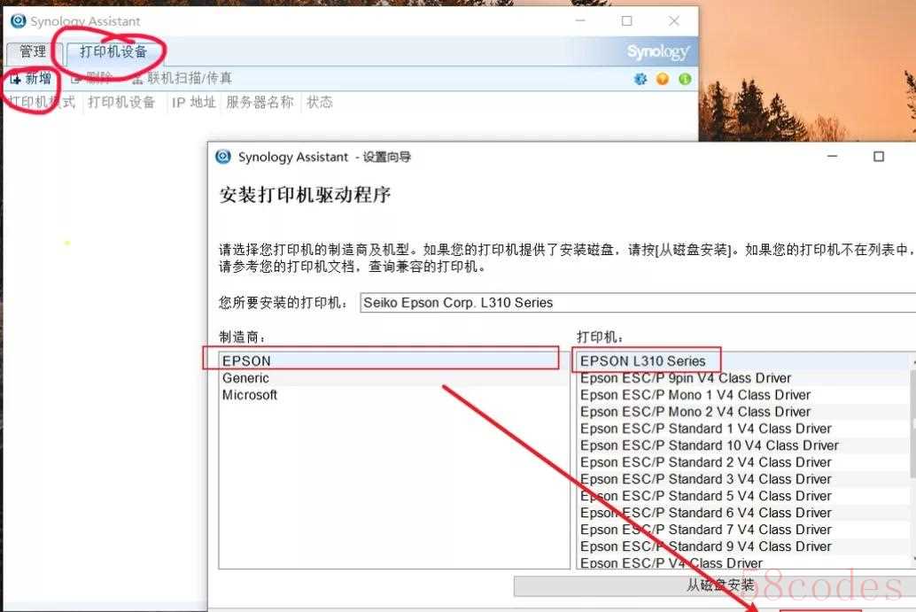 2. "在NAS上安装打印机驱动:" 确保NAS能“理解”并控制你要共享的打印机。