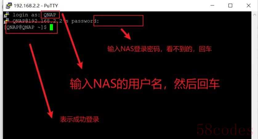然后弹出提示,选择Accept,输入NAS的后台登录名,回车,而后输入密码,回车,看到以下提示说明登录成功。