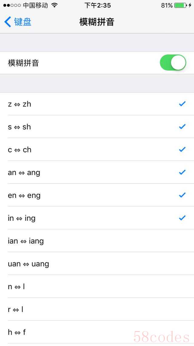 对拼音不太好的同学来说,分不清平翘舌、前后鼻音是常有的事。其实 iOS 自带拼音输入法也提供模糊拼音的选项,你可以根据自己的需求自行调整。