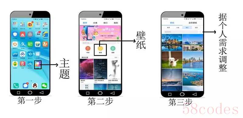 iPhone(苹果手机)和Android(安卓手机)的手机壁纸更换操作具有通用性,一般操作为: