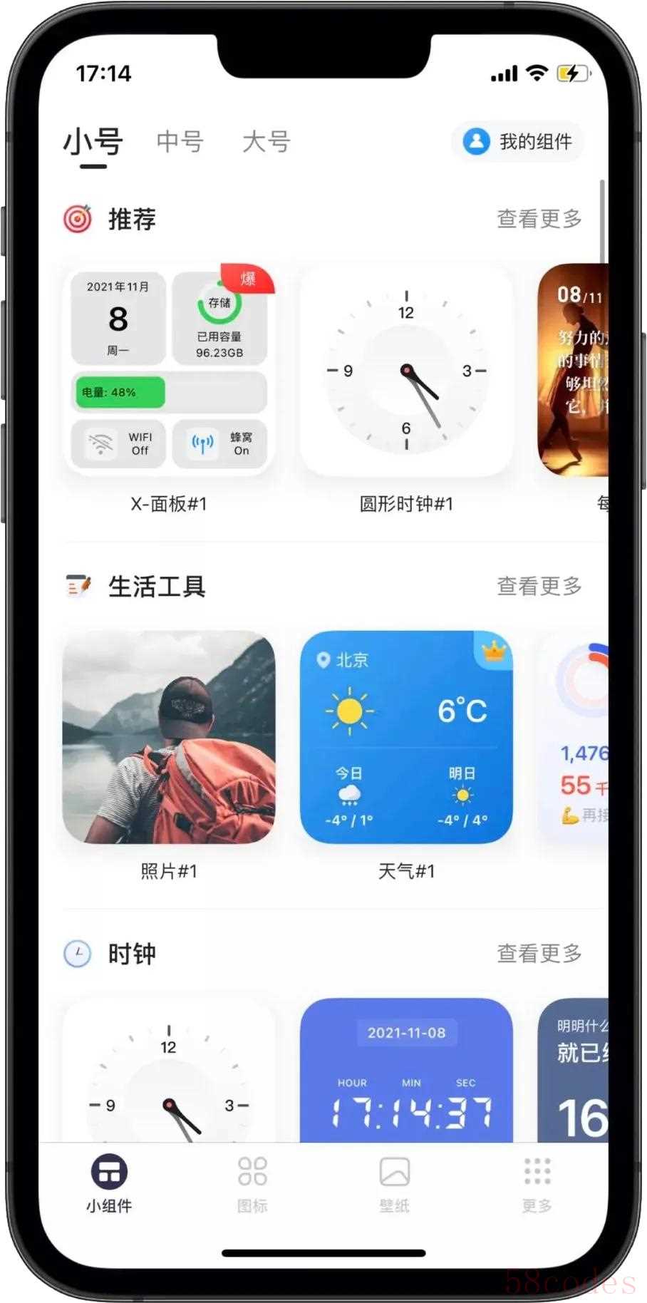 除了X 面板小组件,还有生活工具、时钟、倒数日、仪表盘等等功能不同的小组件可以选择,不过需要注意的是:万能小组件里并不是所有的功能都免费开放。