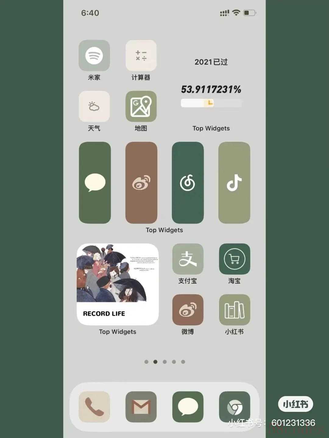 如果你有强迫症,那么选择这种把小组件的颜色,和 App 图标的颜色进行搭配的 iPhone 主题,什么叫和谐统一,这就叫和谐统一!