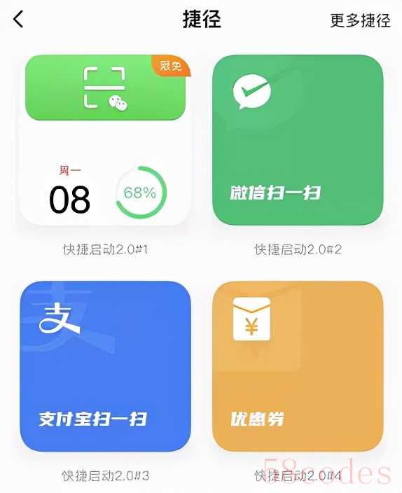 添加在桌面之后只要点一下,就可以直接打开类似:微信扫一扫、支付宝扫一扫、支付宝付款码这些平时需要几步操作才能打开的功能。