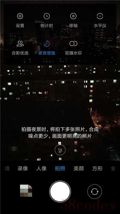 当我们需要拍摄夜景的时候,手机里有一个【夜景增强】的功能,直接进入后选择【更多模式】-【夜景增强】-开启即可。它会自动将手机拍下来的多张照片,合成一张画面更清晰明亮且较少噪点的照片,这样就不怕晚上拍的照片又糊又丑了。