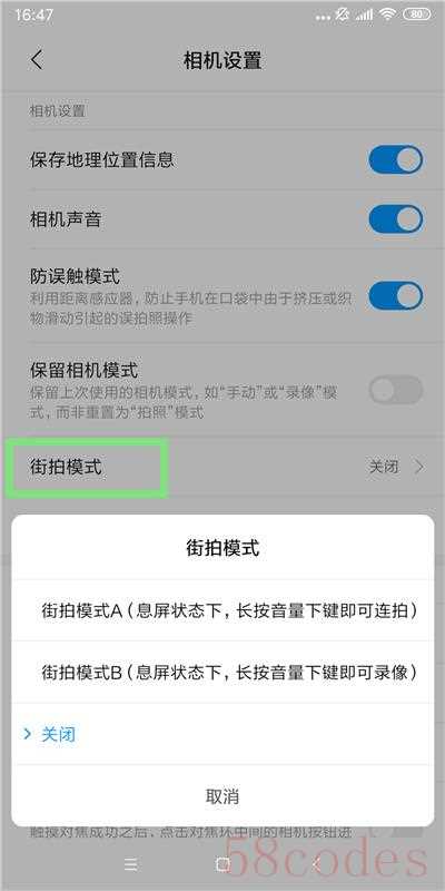 小米的相机里还有一个【街拍模式】设置,可以更快地进行拍照。