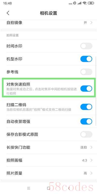 小米手机里还可以开启【对焦快速拍照】来拍出好看的照片。点击【相机】-【设置】-开启【对焦快速拍照】,这样当我们完成对焦之后,会快速直接进行拍照,避免我们因为手抖,拍出的照片模糊不清。