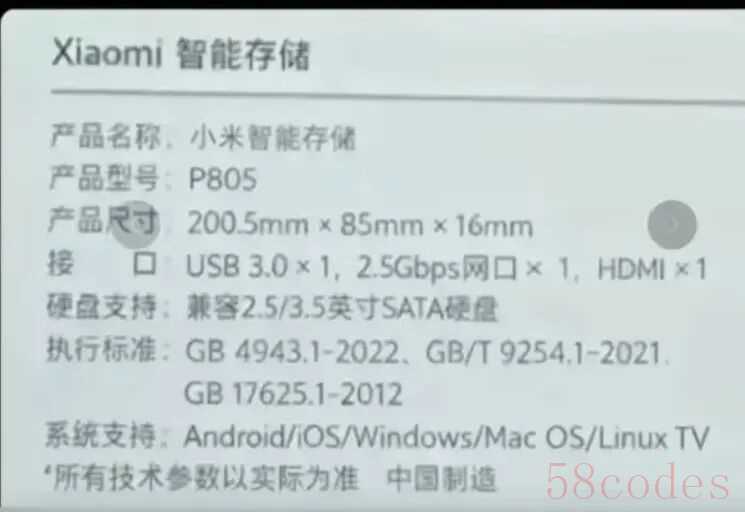 此外,网上流传出了一张疑似小米 NAS 产品的外壳图片,名称为“Xiaomi 智能存储”,尺寸为 200.5mm x 85mm × 16mm,配有 USB 3.0、HDMI、2.5Gbps 网口。结合评论区和爆料显示,这款产品预计将在12月份正式发布。
