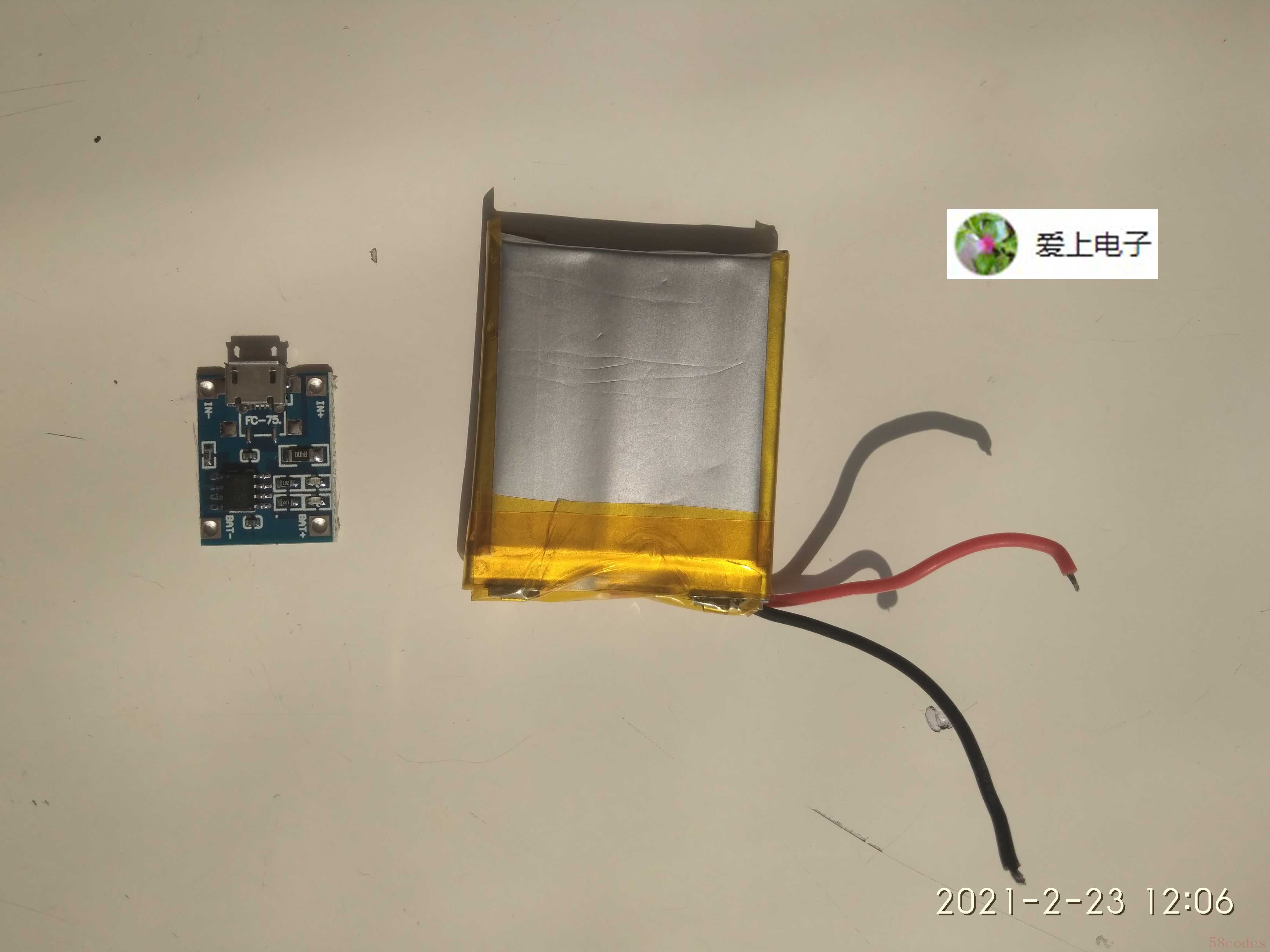 二、需要用到的零件,1 充电小板,2 锂电池,如图2