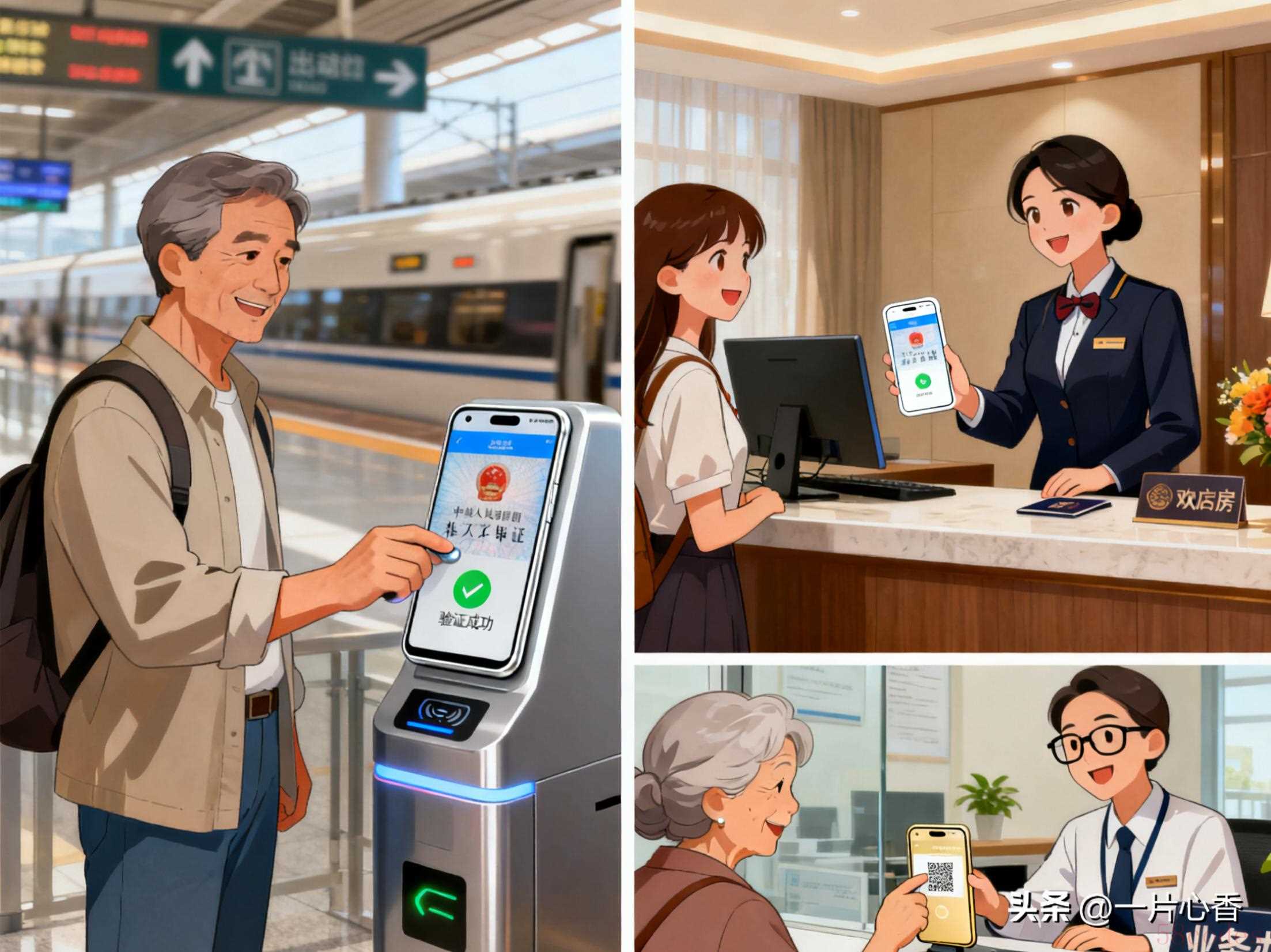 - 住宿登记:连锁酒店和品牌酒店基本都接入了电子身份证系统,办理入住时出示手机里的电子身份证,前台扫码即可完成登记;