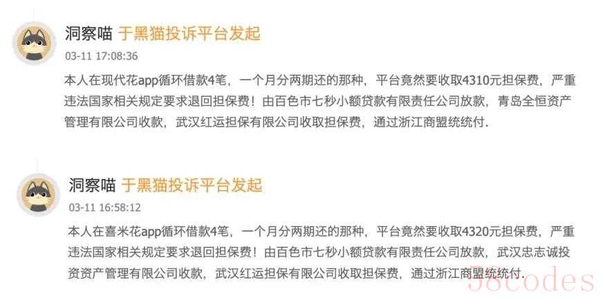 记者查询发现,类似指向七秒小贷放贷时收取高额担保费的投诉有多条,涉及平台有“米多多”“好居客”“喜米花”“现代花”等。